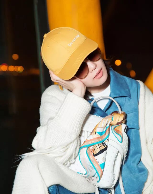 Angelababy现身巴黎街头,蓝色流苏外套使优雅中多了几分俏皮,用利落的白衬衣和阔腿牛仔裤来搭配就很好看~