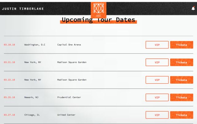 你还有机会Timberlake的北美巡演还在继续,这种在巡演地点发售的计划还在继续。