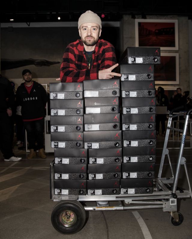 这份视频来自周三的多伦多Jordan 专卖店,在周三下午之前没有人知道Justin Timberlake 会空降到这件Jordan 专卖,更没想到带来的是限量的Air Jordan 3 JTH,大概是下午1点左右,人们在社交网路上面接到通知,今天Jordan 专卖将发售Air Jordan 3 JTH。