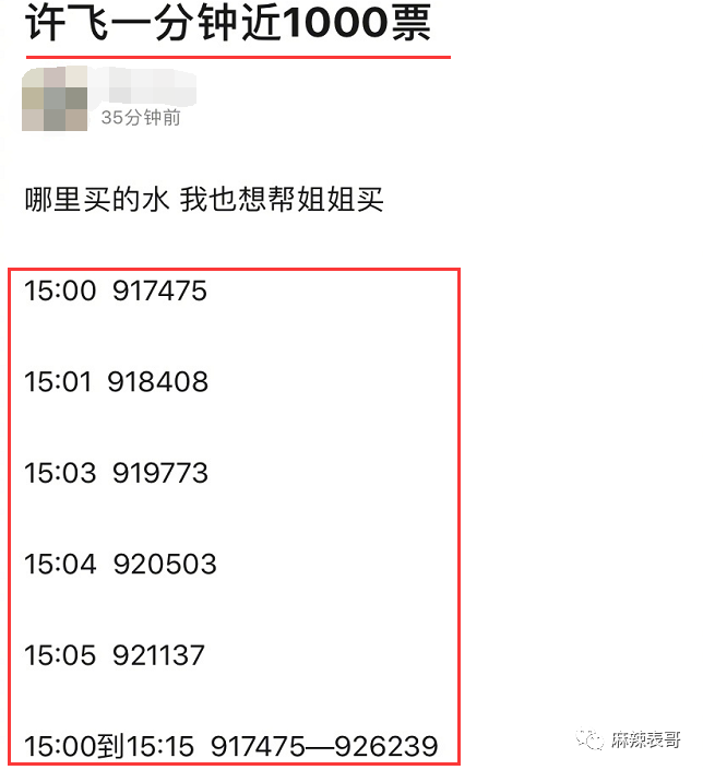 有网友统计,在昨天下午3点钟那会,许飞基本上是一分钟涨1000票。