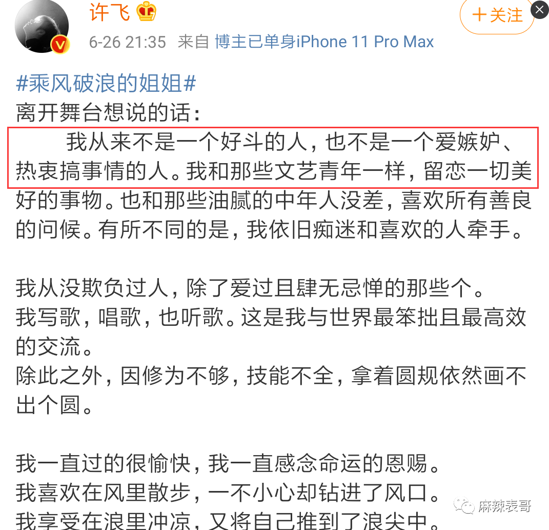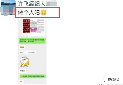 这事很有趣的是后续,上了热搜以后,许飞的经纪人下场,在朋友圈发图,说做个人吧。
