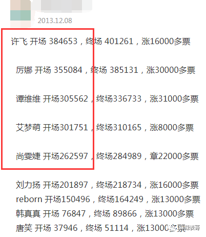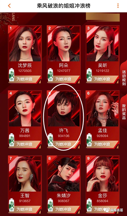 昨天一天,许飞的票数蹭的一下飙升,还一度超过了孟佳,最高时达到了第4名。