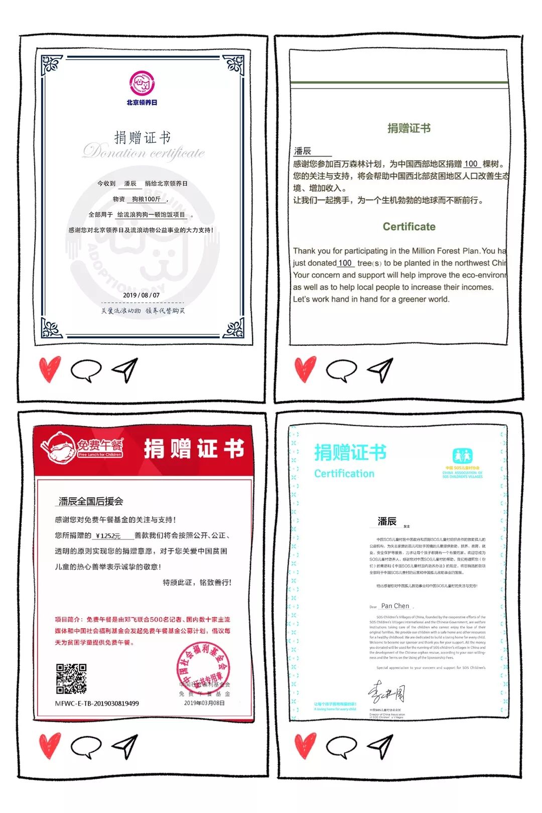 不仅如此,出道这些年,潘辰热衷于公益事业,积极参与公益活动