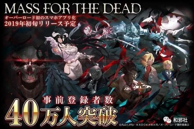 人气作品《OVERLORD》此前宣布将推出手机游戏《MASS FOR THE DEAD》,官方公布了游戏的新情报,并宣布延期至2019年初上线。手机游戏《MASS FOR THE DEAD》是一款改编自动画《OVERLORD》、由Kadokawa Games 制作的异世界奇幻RPG,登陆iOS和安卓两大手机平台。游戏将延续轻小说《OVERLORD》的精髓元素和世界观设定,还将邀请原作者丸山くがね撰写游戏版原创故事,动画声优参与配音。昨天官方宣布该游戏提前注册人数突破40万人,并将发放可以抽卡10次的500颗混沌石。
