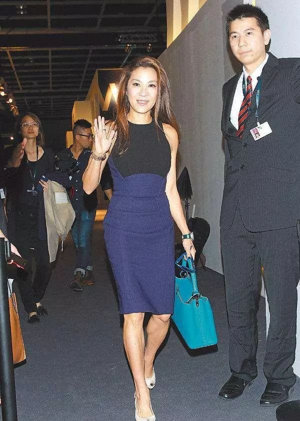 杨紫琼穿着这一身蓝色的衣服,真的是非常的美丽。杨紫琼真的是太瘦了,看着就剩骨头。她穿着这一条裙子,腰身部分特别的细。
