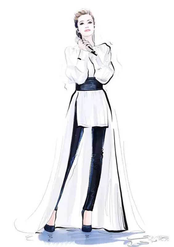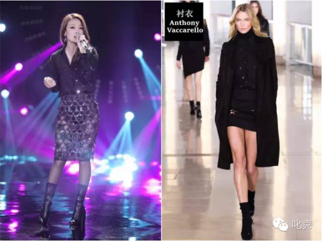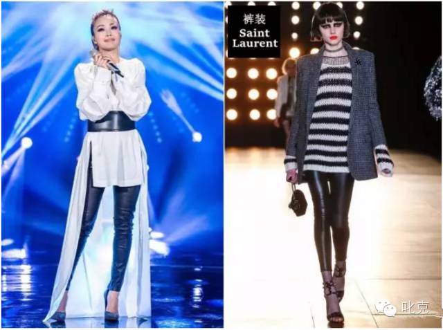 下半身的造型,容祖儿选择了Saint Laurent2015秋冬款的黑色修身皮裤和Saint Laurent的小高跟,与上半身的白色衬衣打造出万年经典的黑白元素,黑色高腰带点睛之下尽现满屏大长腿!