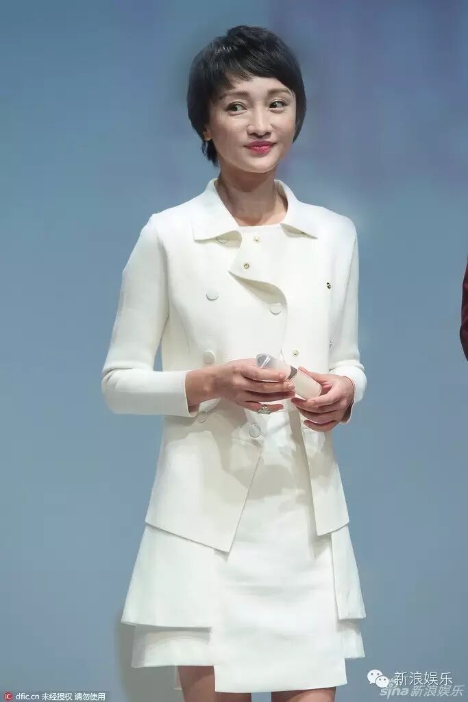近日出席某活动的周迅,头发长长了,一身白色套裙显得挺小女人。