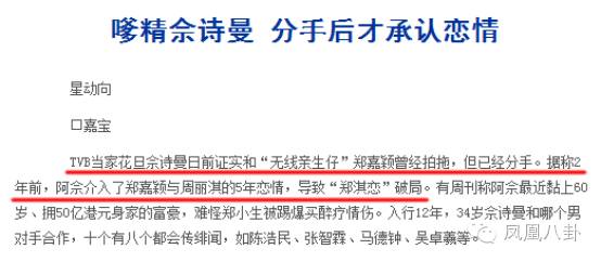 还有报道称佘诗曼最初是介入了郑嘉颖与周丽淇↓↓