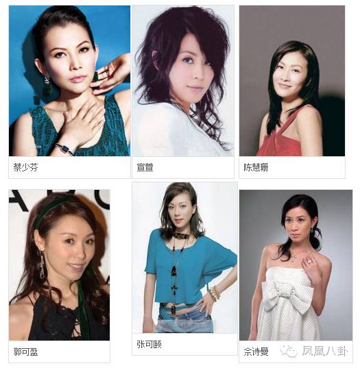 六人当中,郭可盈、宣萱、张可颐70年生,陈慧珊71年,蔡少芬73年。