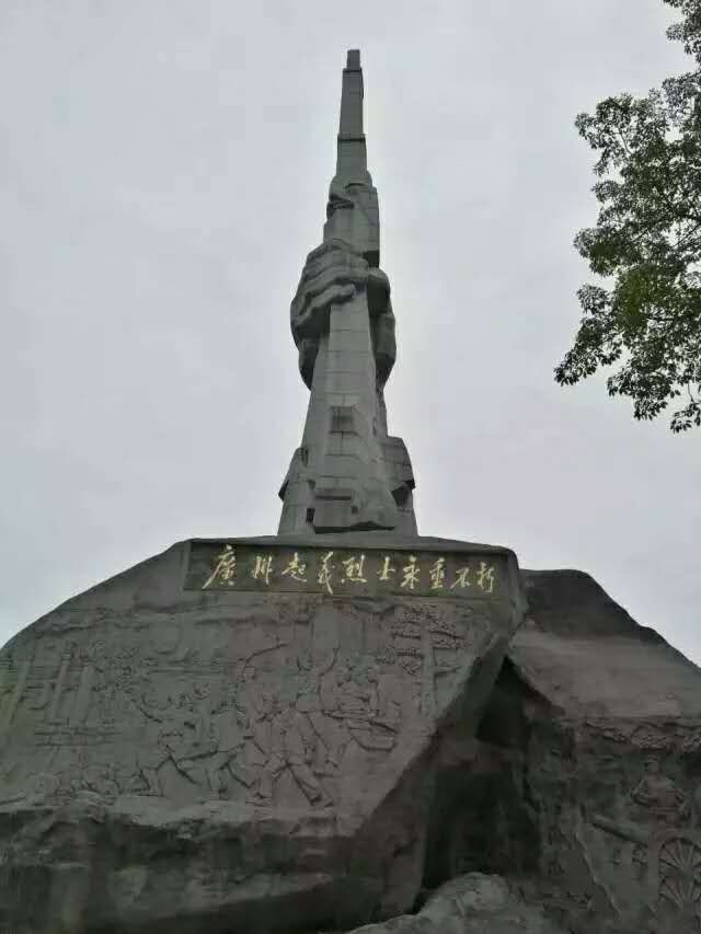 桃花红雨英雄血,碧海丹霞志士心。今日神州看奋起,陵园千古慰忠魂。