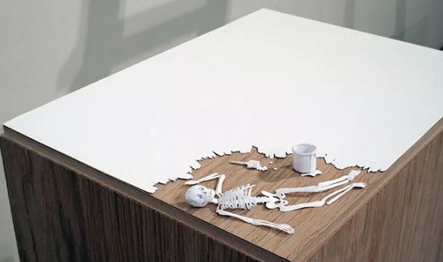从打印机里取出一张空白的普通A4纸,你可以在上面写字,画画,也可以用它剪出图案。这正是Peter Callesen在做的事情。这位丹麦艺术家从2004年开始用纸雕的方式不断将二维平面转变成充满奇幻想象的三维立体雕塑。Callesen的剪纸复杂而精湛。他以惊人的细心和耐心,用带有忧郁色彩的悲喜闹剧式幽默创造出了超越审美的一个个白色世界。