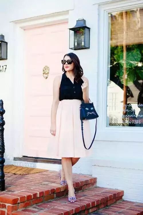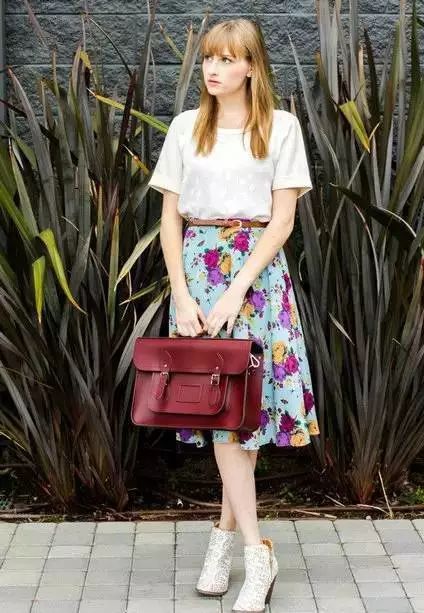 出挑的半裙配白衫总不会错,鞋子与裙子、包包或上衣顺色,这你说了算~