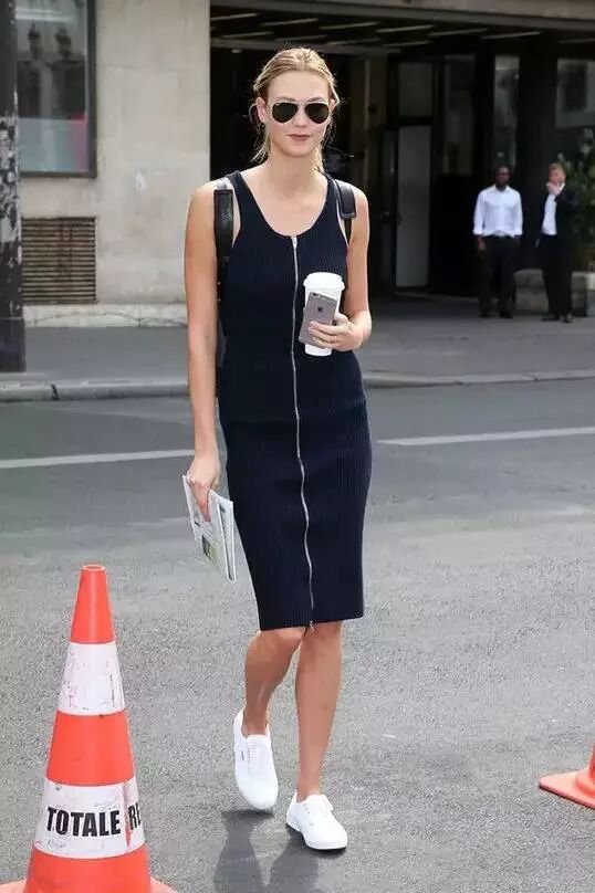 衬衫、纯T、丑拖鞋,都该拿出来噜。KK这样的拉链裙也是好选择,中间这条拉链可有大学问——显瘦!