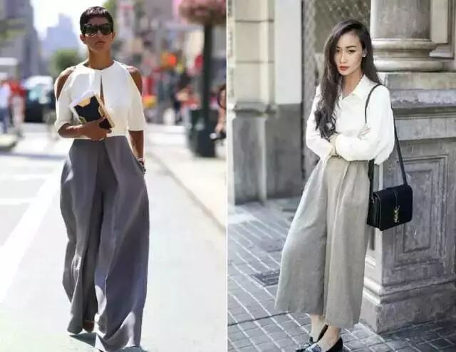 除了大热的阔腿裤外,普通西裤挽起裤脚管也不错,看博主Jenny Tsang和Cara
