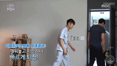因为知道自己睡觉会磨牙,姜丹尼尔就在室友秀珉熟睡后,一个人悄悄地睡在了客厅的沙发上。