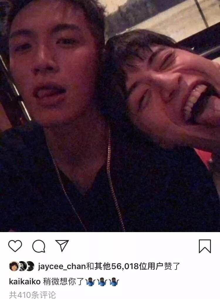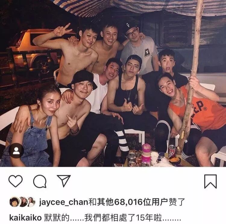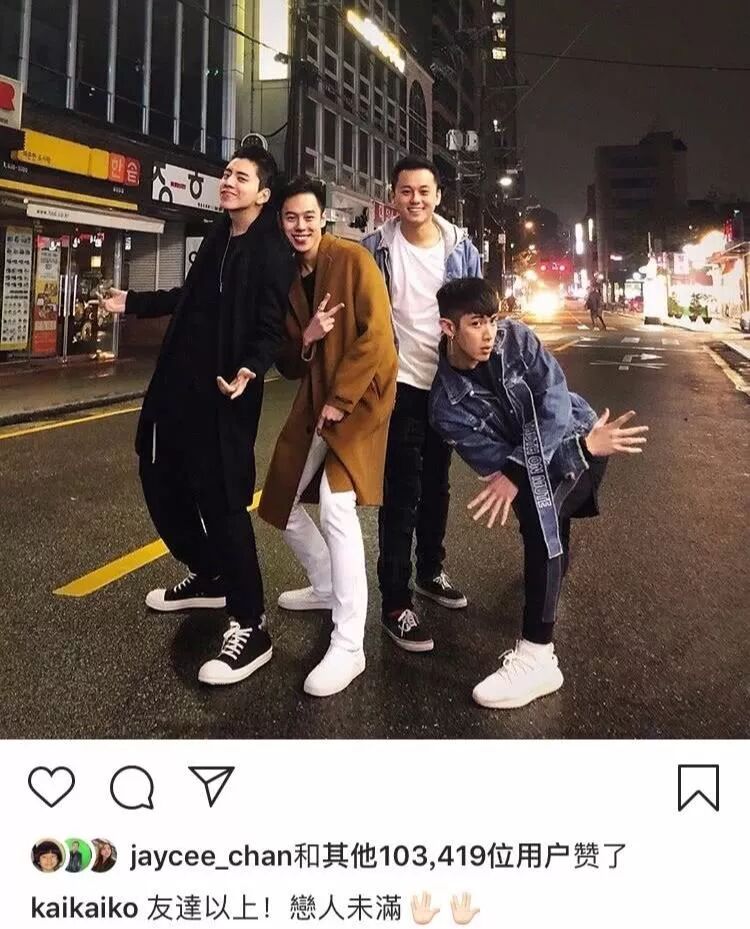 偶尔,柯震东发的聚会照的配文,总是带着点“基情”。