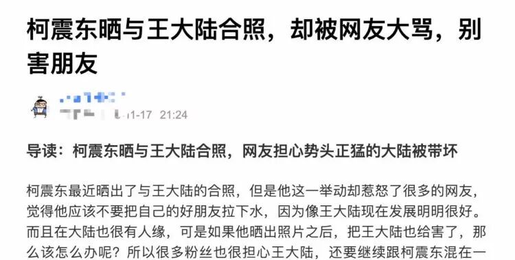 有媒体还发文,借网友之口希望柯震东“别把势头正盛的王大陆带坏”。