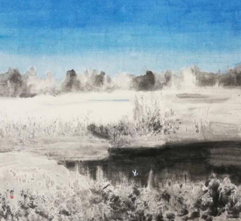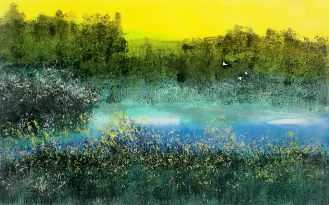 灵感和悟道往往来自情感迸发的一瞬间,时代本身的浮躁与城市边缘的白鹭湾形成的强烈对比,激发了米金铭对白鹭湾题材的创作欲望。在这里,画家找到了人与自然的亲和,以自身的内在修为和独到眼光与自然进行精神往来。城市里的人们早已失去耐心去等待对方或自己多一秒,漠然和抱怨使得彼此渐行渐远。没成想城市边缘还有这样一处白鹭湾,距那躁动的喧嚣仿佛有千里之远,蓝天澄净、湖水透彻,倒映着那人、那荷,和偶尔一掠而过的白鹭。(完)