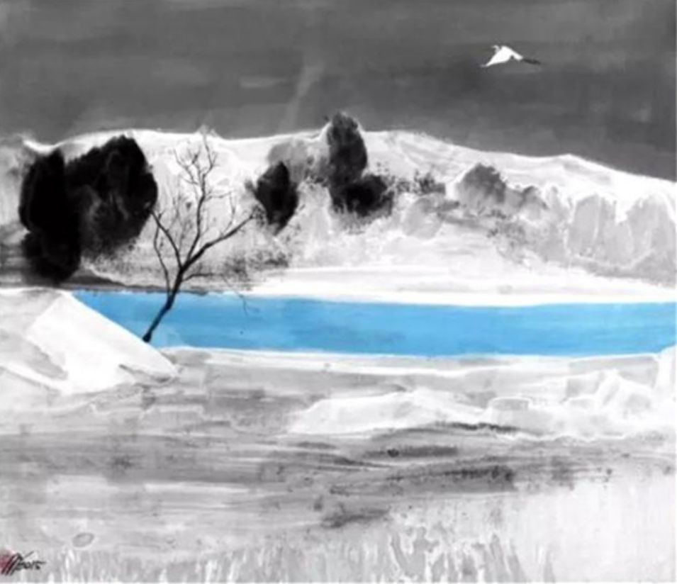 过去,米金铭描绘的花鸟风月皆是“发生”……《大渡河》却是他心里的万象,万千景象。在米金铭眼里,“新具象”与“新水墨”归结于笔墨符号语言的开端,漫长的自由发展,脱离物体的本身,保留着象征性的标志,一眼便能理解,越看越有趣味,体现了中国画中的无形与有形共存的力量。他不必再为艺术语言纠结半秒,熟虑而后言,让自己的言行和能力成正比。在日后的每一天,无论发生什么事情,能做到得之淡然,失之坦然,内心从容而宽阔是他一直的主张。