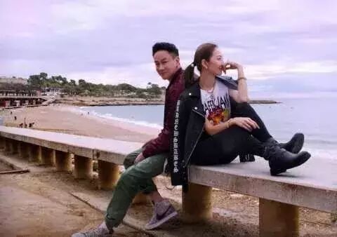 照片中的何润东与爱妻在巴塞罗那的海边甜蜜浪漫牵手相拥,幸福感爆棚。