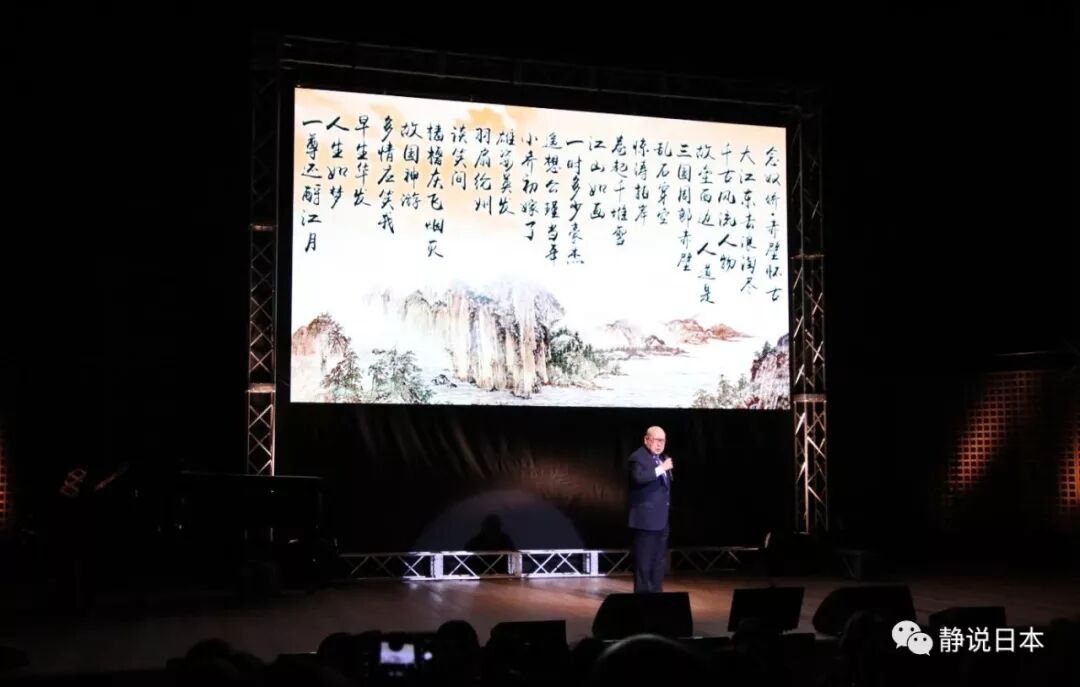 这一事例经过主持人介绍后,全场响起了热烈的掌声。不过谷村先生说,自己终生难忘的感动,是在中国。今年9月,他在上海举行了一场歌唱生涯30年的演唱会,最后唱到《星》这首歌时,全场3000多名观众都打开手机当音乐棒同声演唱。谷村先生说:”你没有想到,大家唱的全是日语“。