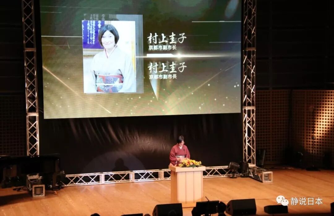 京都市副市长村上圭子穿了一身漂亮的和服到场致辞,京都是日本文化的一个重要符号,在这一次京都电影节上,上演了尚长荣先生主演的《曹操与杨秀》,为京都作为一个文化创造城市添了光彩。