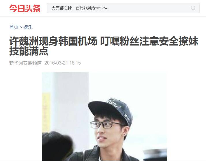 而且许魏洲一个中国演员“麻痹”韩国机场居然在韩国也出了新闻: