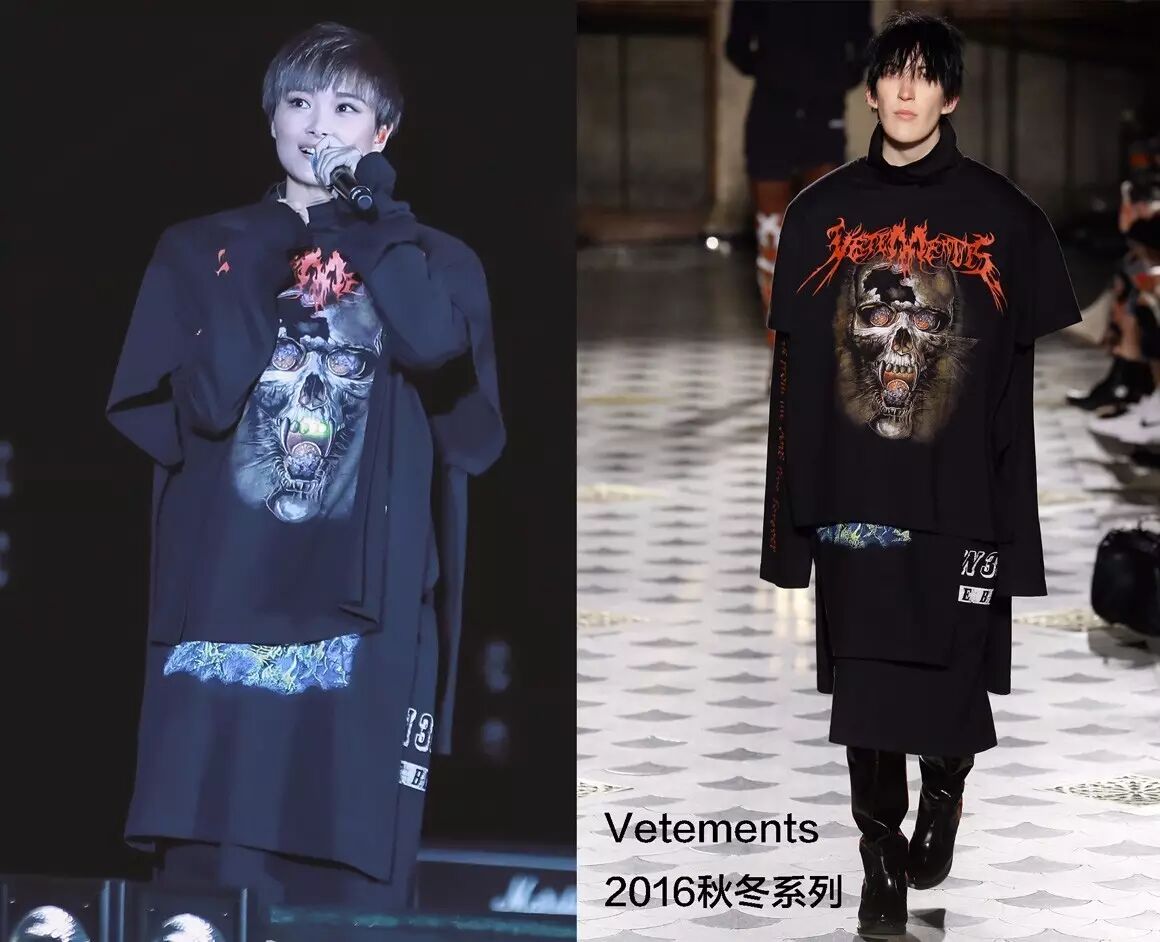而同样在演唱会的李宇春本人则迅速穿上了2016秋冬系列的Vetements,大家快来数数这衣服究竟有几层▼