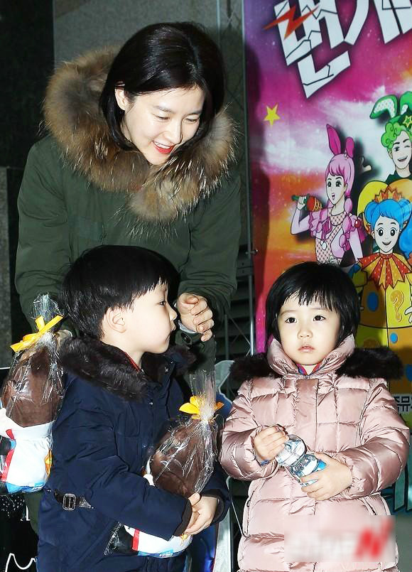 2012年,李英爱与丈夫和一对儿女为某杂志拍摄了一组家族写真,宝贝们脸圆嘟嘟,呆萌抢镜。