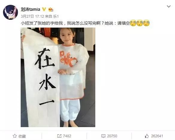 谈到母亲节孩子给自己送礼物时,刘涛说:“毕竟孩子们还小,对于这个节日不是特别有概念。母亲节我是在工作中度过的,收工回到家以后,孩子们早就睡着了。当我走到客厅的时候,发现桌子上有一幅他们亲手给我画的画,是我们一家四口的全家福,爸爸牵着妈妈,妈妈拉着姐弟俩,还有一行歪歪扭扭的小字写道,’祝最爱的妈妈,母亲节快乐!’。我当时特别感动,眼泪在眼眶里打转,觉得自己特别的幸福。”