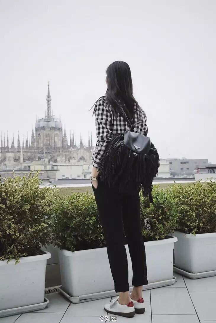 Prada的流苏双肩包,外型非常特别,而且容量超级大。