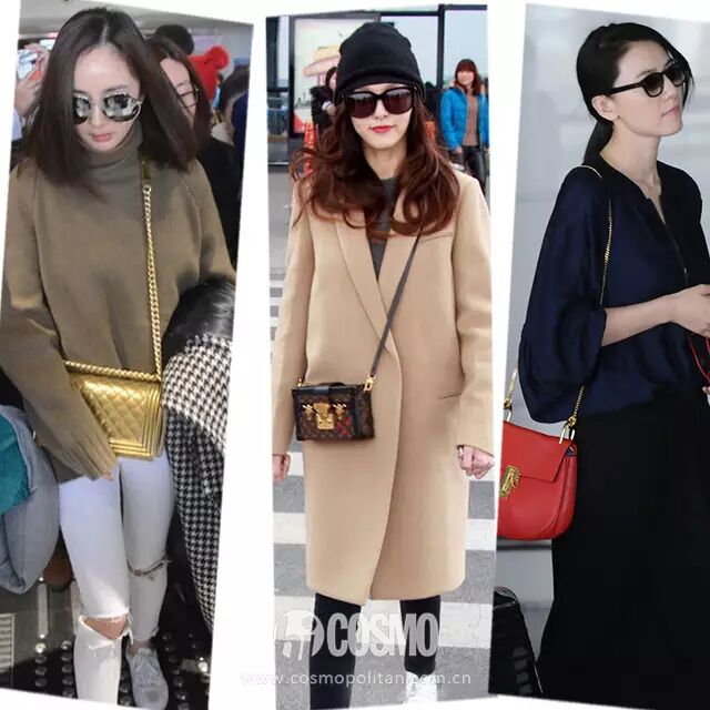 杨幂的街拍中包包的款式比较高街味道,流行什么杨幂的机场街拍中就会出现什么包,也是名副其实的包姐。