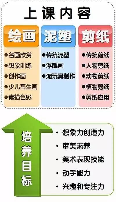 1.绘画泥塑剪纸班2016年秋季学期总共24节课(每周上2节课):写生画3节、创作画3节、中外名画欣赏3节、想象力训练3节、泥塑6节、剪纸6节。