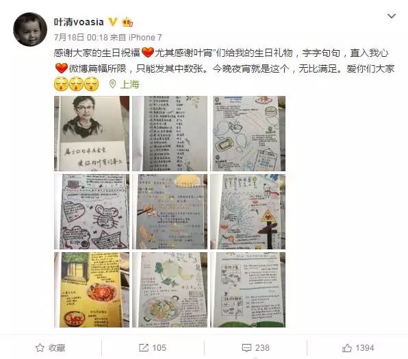 叶清发微博向粉丝表示感谢