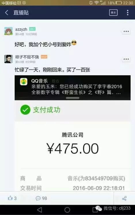 疯狂的粉丝 李宇春销量战胜杰伦?玉米已经拼命了! 娱乐圈里的一颗小毒瘤 内地女星 2016-06-28 14:53:08 191 创作不易,用心坚持,欢迎请BaGua喝几杯爱心咖啡!打赏并支持本文 打赏并删除本文 总所周知,周杰伦新专辑24号上线。已经取得不俗成绩,销量也达到百多万张。李宇春粉丝为了霸占腾迅销量榜首,这俩天也是拼了。。(看看玉米们的辛苦成果)《下个,路口,见》、《阿么》、《常旅客》、《籁赋》、《小朋友》、《活该》、《还有我疼你》、《蜀绣》、《WhyMe》等等 01.屋顶02.东风破03.简单爱04.借口05.安静06.安静07.可爱女人08.黄金甲09.龙卷风10.米兰的小铁匠11.开不了口12.黑色幽默等等等…… 创作不易,用心坚持,欢迎请BaGua喝几杯爱心咖啡!打赏并支持本文 打赏并删除本文 感谢您的支持鼓励,我会继续努力的!文章地址:用户邮箱:打赏金额:USDT 请输入数字点击”去打赏“,即可进行打赏支持本文章哦 李宇春 About the Author 娱乐圈里的一颗小毒瘤 功能介绍:我们不生产新闻,只是新闻的搬运工。 Related Posts 疯狂的粉丝 李宇春销量战胜杰伦?玉米已经拼命了! 2016-06-28 14:53:08 发表评论