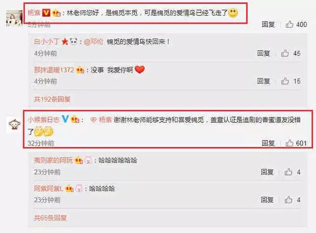 随后,杨紫现身“是锦觅本觅,可锦觅的爱情鸟已经飞走了”,林依轮用自己的表情包逗趣回应“摸摸头,还你一只爱情鸟”。