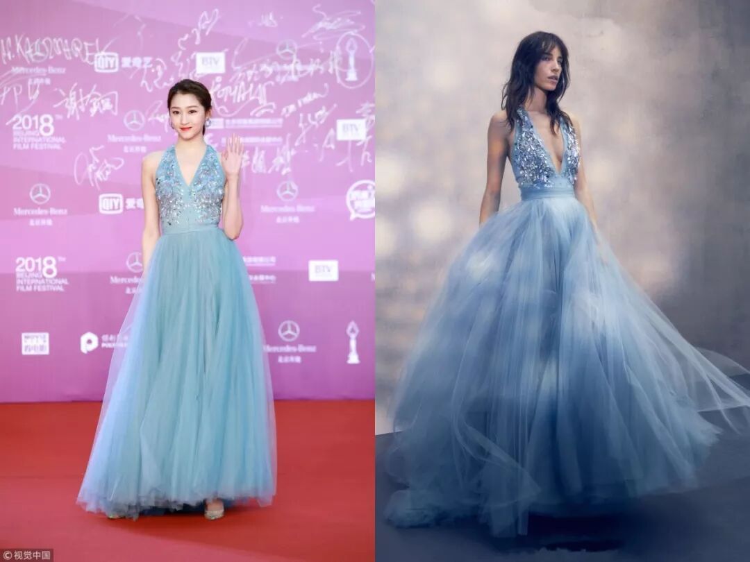 ▲这次北京国际电影节闭幕式红毯上,关晓彤身穿Jenny Packham 2018春夏礼服亮相,珊瑚蓝色薄纱长裙,点缀浪漫星光,飘逸灵动,满满的少女力。