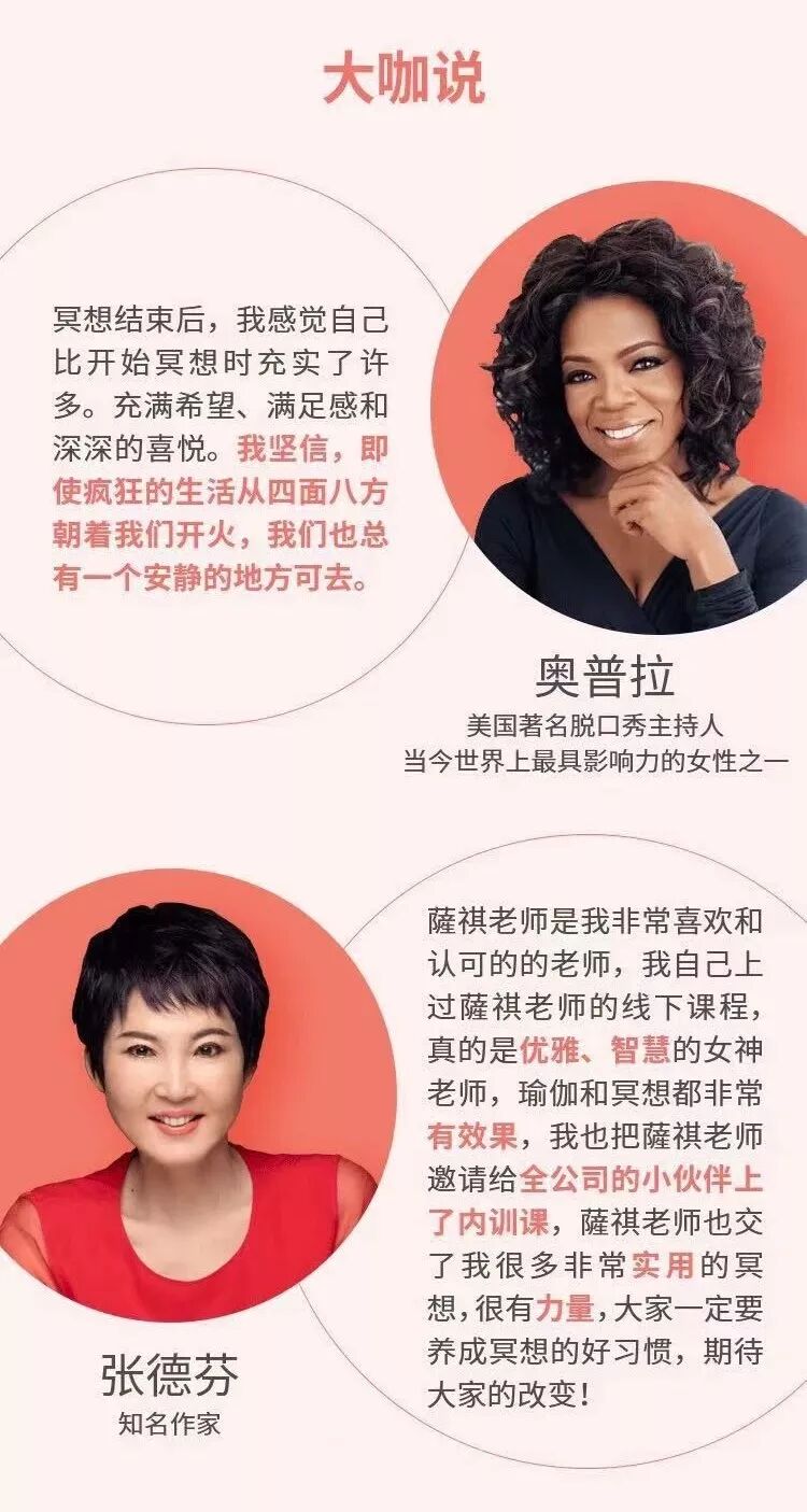 现在,张德芬空间特邀德芬指定瑜伽教练薩祺带来“平静的力量——七天生活实修轻冥想”。