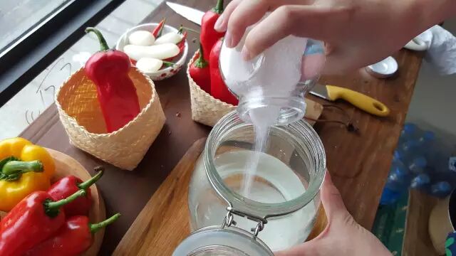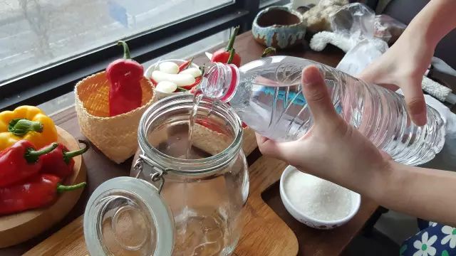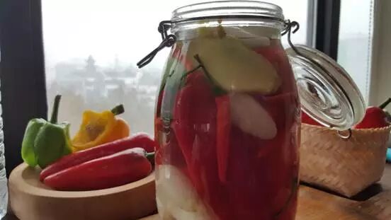 ▼ 最后,你可以把它放在你的厨房,也可以是书房,也可以是卧室......静静等待3-5天。然后就可以获得一瓶1.8L的泡椒萝卜啦!!当然它在这几天里也可以作为你家的装饰品,这为你省下了动辄大几百买鲜花的费用!快过年了,这红火的颜色,应该中国人韩国人都是喜欢的吧!!