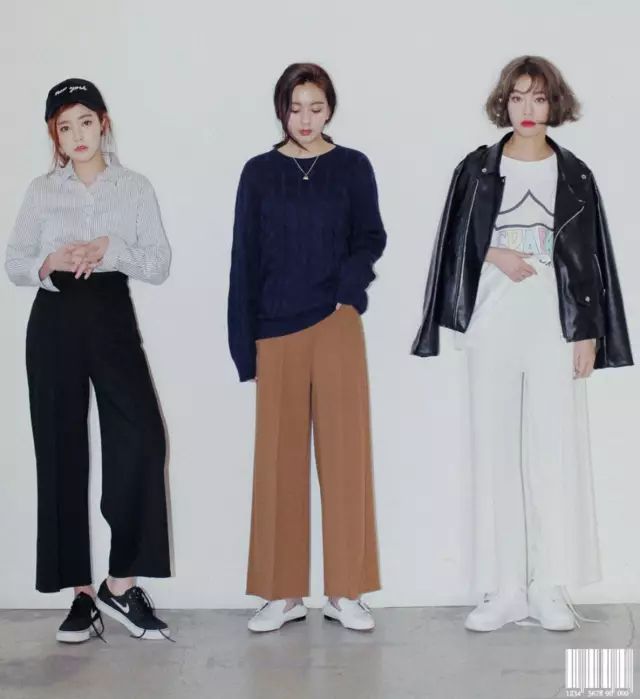 阔腿裤才没有想象的那么难穿,只有一点:露出腰身,衬衫/针织衫可以扎到裤子里,毛衣选短款的来搭,形成视觉上的对比效果,微胖显瘦而瘦子也撑得起的气场!