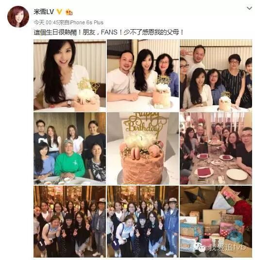 9月2日是米雪61岁生日,今天(16日)凌晨,米雪晒出家人和粉丝为她庆生的照片,附文称“这个生日很热闹!朋友,FANS!少不了感恩我的父母!”
