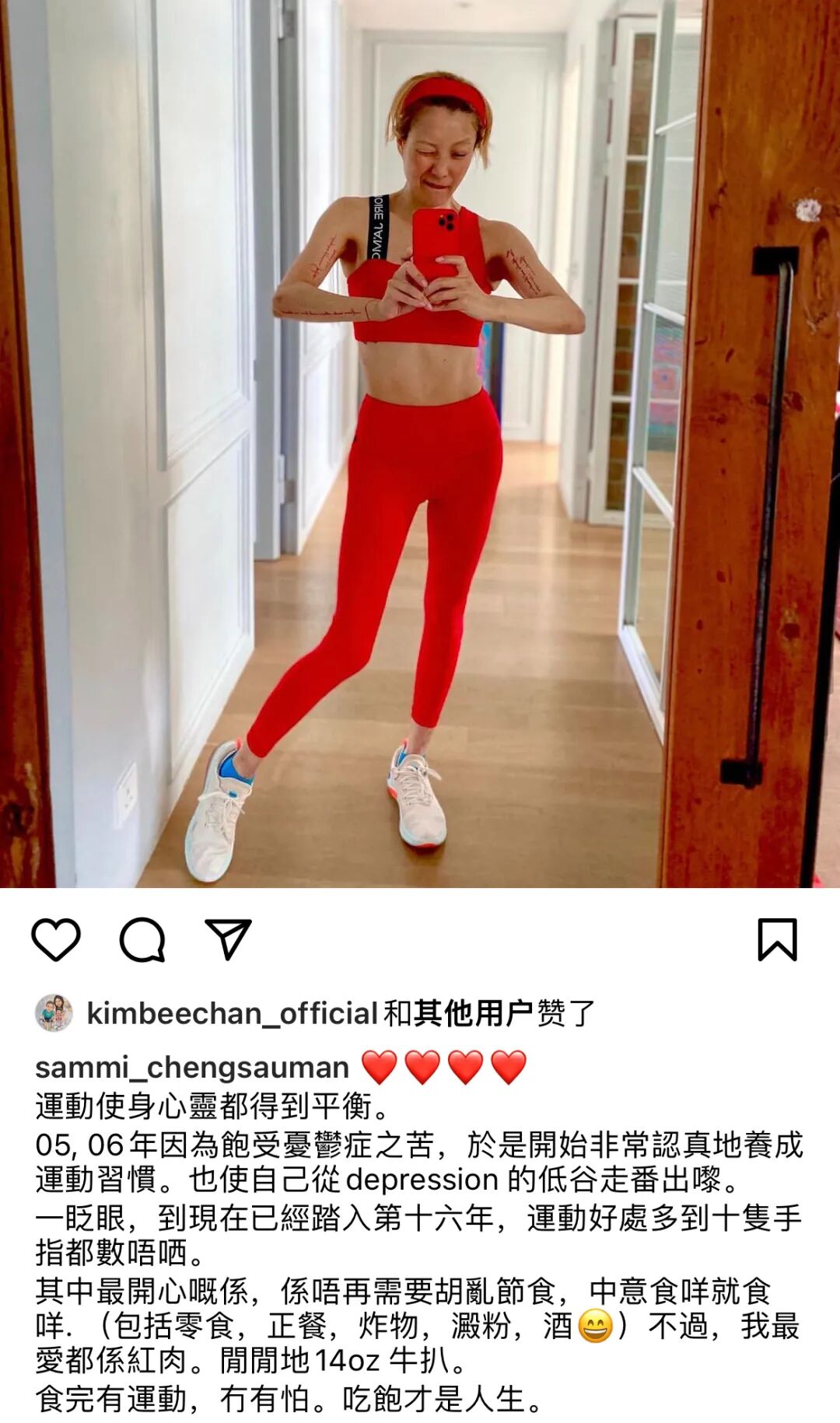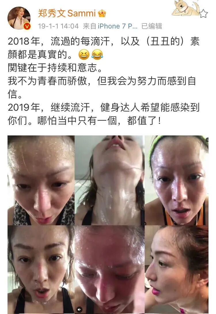 现在的她,不再害怕分享真实的自己,会很开心的发出爆汗“丑照”。▼