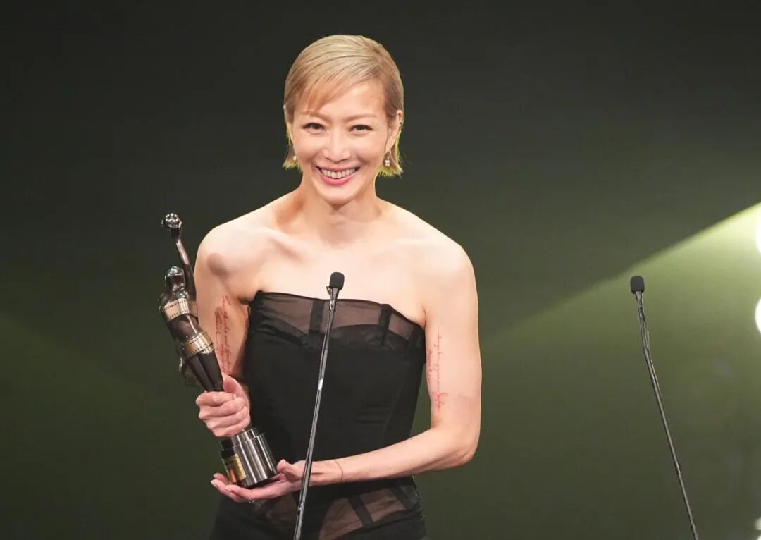 硬汉古天乐也在观众席上为她来之不易的获奖,流下泪水。