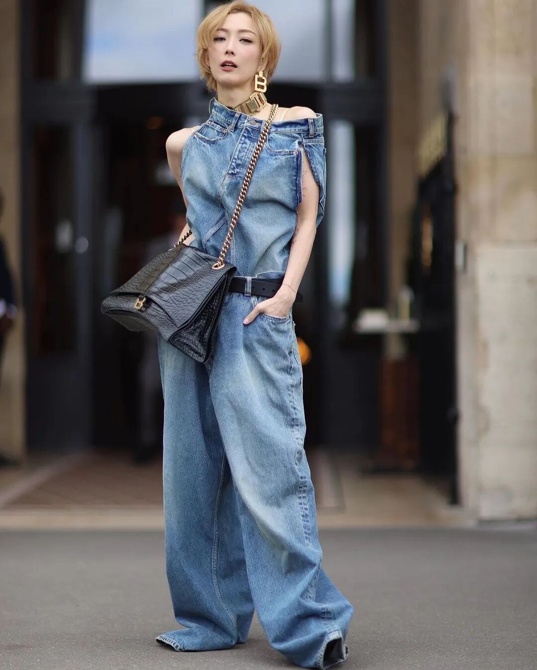看她穿着 Balenciaga 看秀,愣是把廓形剪裁穿出一股仙气。▼