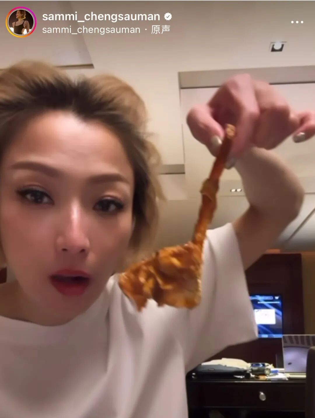 连刘德华都说,一起吃饭时,Sammi 会把炒饭里的肉丁都挑出来吃,但一粒米也不肯吃。