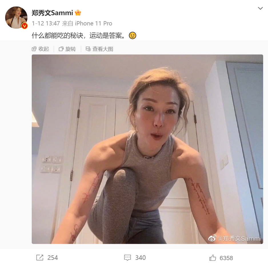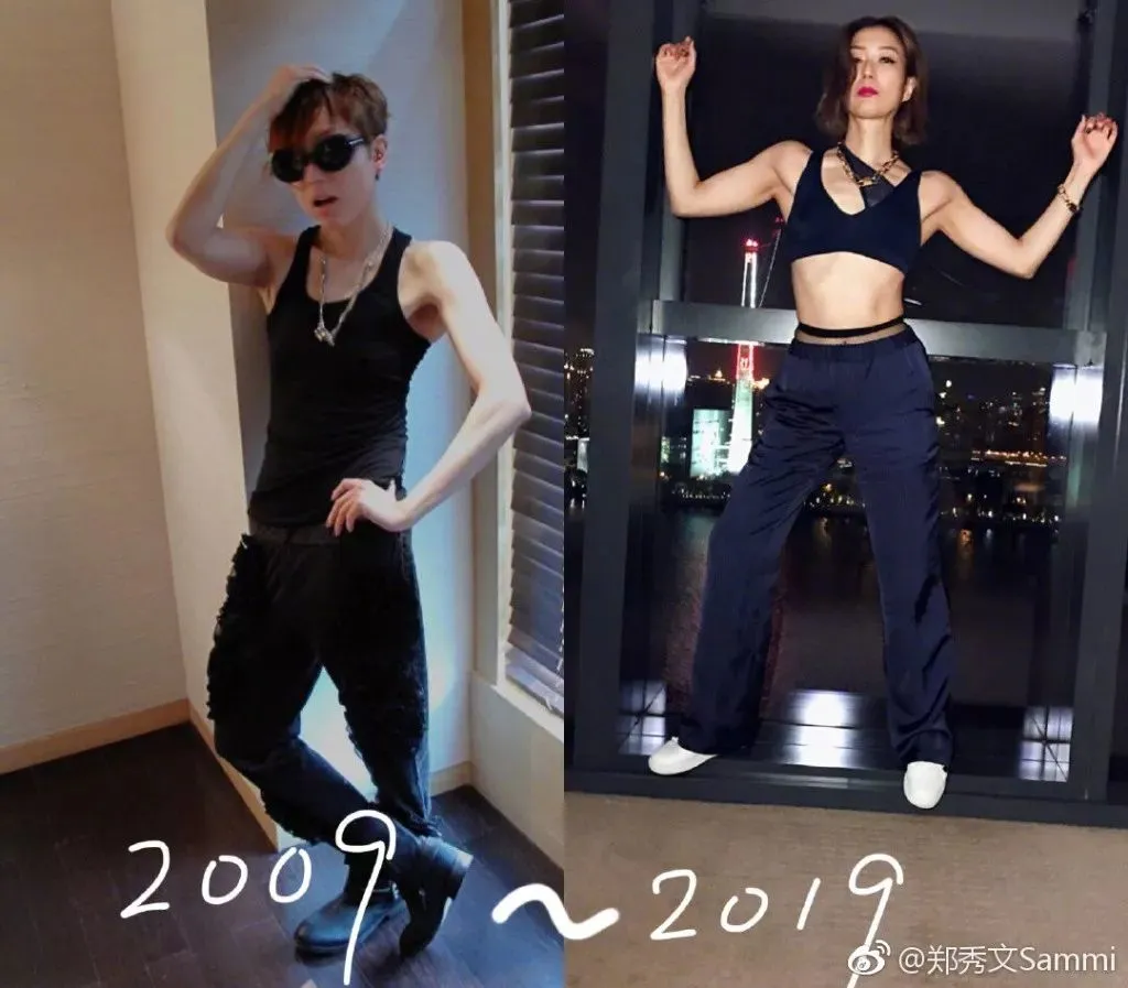 郑秀文自己也在微博 po 出自己十年的对比照,跟那时比,现在的肌肉线条真的好美。▼