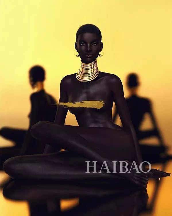Shudu Gram甚至成了蕾哈娜 (Rihanna) 美妆品牌Fenty Beauty的模特——抹着艳丽的橘色唇膏,在大片中尽情施展魅力。