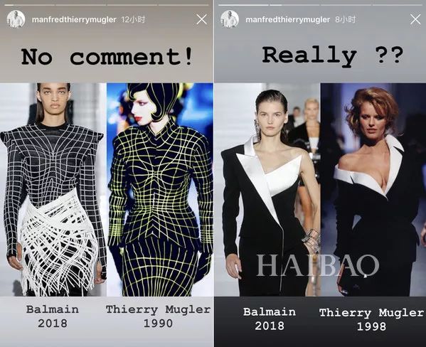 Thierry Mugler借Ins讽刺Olivier Rousteing抄袭
