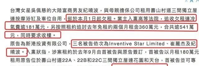 5月18日,纪晓波在HK深水湾寿山村道一带承租3栋房产,被爆总计千欠租超过541万港币,换算成人民币将近500万元,遭到业主起诉。