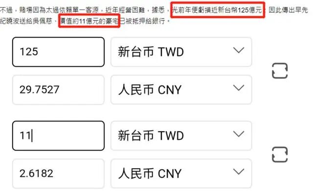 而因yiqing重创经济,旅游业又首当其冲,纪晓波塞班岛的赌场也因为太过依赖单一客源,近年经营困难,据悉,光前年便亏损近30亿人民币(新台币125亿元),因此传出早先纪晓波送给吴佩慈、价值约2.6亿人民币(新台币11亿元)的豪宅已被抵押给银行。